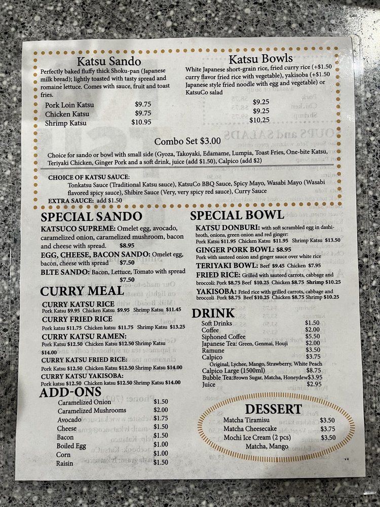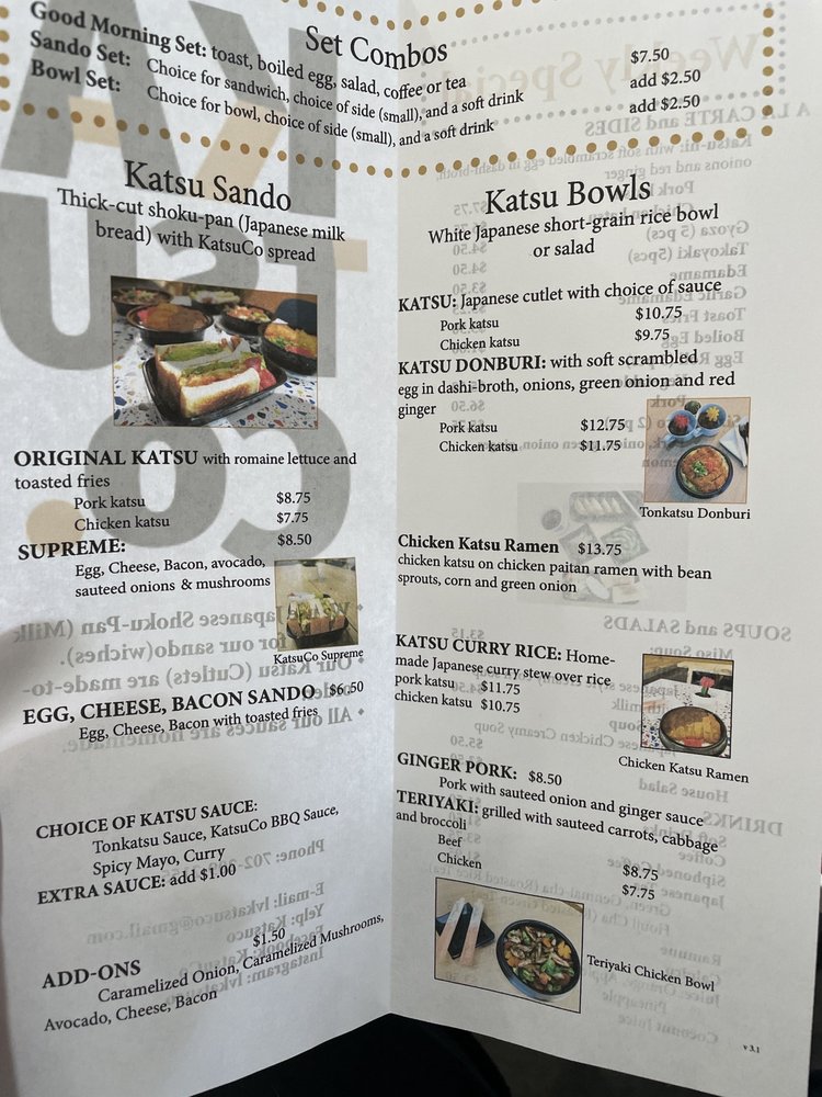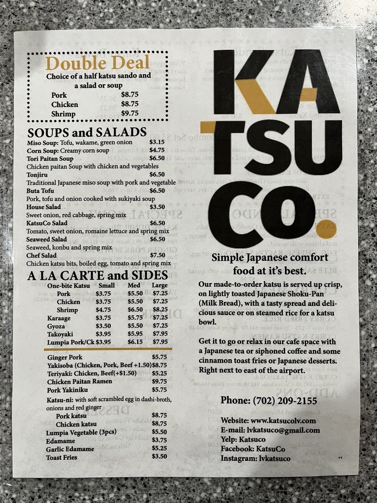 Welcome to Katsuco, a delightful gem nestled in Las Vegas, where Japanese flavors meet modern dining. Specializing in salads, sandwiches, and authentic Japanese cuisine, Katsuco stands out for its impeccable use of fresh ingredients and a cozy ambiance that invites all. The menu features enticing options like the Good Morning Set and OmuRice, along with an array of delicious desserts, including Matcha Cheesecake and Mochi Ice Cream.